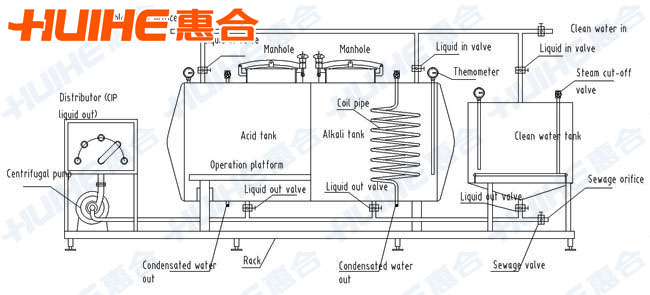CIP cleaning system is locally known as in situ cleaning system, referring to CIP, also known as cleaning position or positional cleaning (cleaning in place). Cleaning in place means not open or move device, which is, using cleaning fluid which is high temperature and high concentration to impose force on device equipment, thus cleaning the contacting surfaces. It is suitable for cleaning and purity of production device which is high demand to sanitary level.