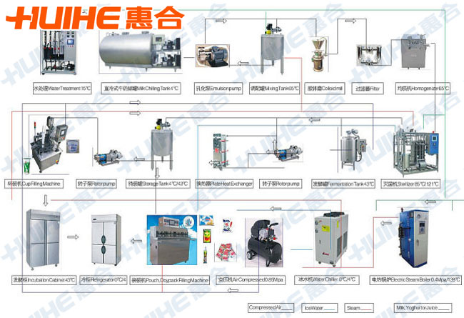 Clouted yogurt production line adopts the most advanced technology, the collection prepare pot, wait for caning, homogenizer, colloid mill, as one of the production line, from the system out can be directly to the filling machine. It has the advantage of reasonable structure, beautiful shape small production space, low cost of maintenance.