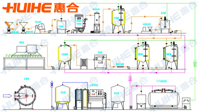 The soymilk production line is mainly composed of water treatment system, water storage tank, colloid mill, centrifuge, blending tank, filter, centrifugal pump, homogenizer, UHT sterilizer, vacuum degassing machine, filling machine and autoclave.