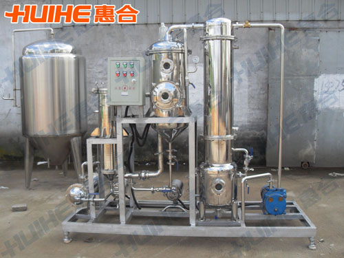 2、濃縮液料: 單效濃縮器采用外加熱自然循環(huán)與真空負(fù)壓蒸發(fā)相結(jié)合的方式,蒸發(fā)速度快,濃縮比可達(dá)1.3,液料在全密封狀態(tài)濃縮,用單效濃縮器濃縮出來的藥液,具有低污染,藥味濃的特點,而且清洗方便(打開加熱器的上下蓋即可進(jìn)行清洗)。